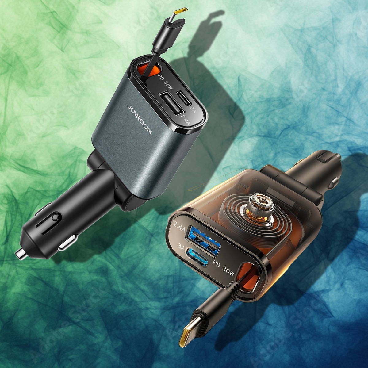 Avtopolnilec Joyroom "CCL07" 3v1 z USB-C in USB-A vhodom ter enim izvlečnim kabl ...