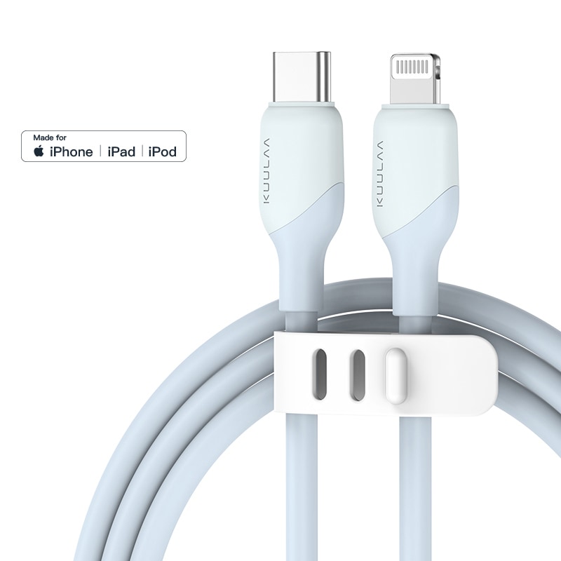Kabel nudi USB-C in Lightning konektorja za polnjenje in prenos podatkov.