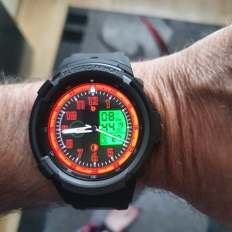 enostavno nameščen, trden, lepo zasciti uro, cool zgleda ... le vrtljv obroc se mal tezje vrtu - sam ne eno strani prosotr ampak ga pa leoo zasciti pred udarci