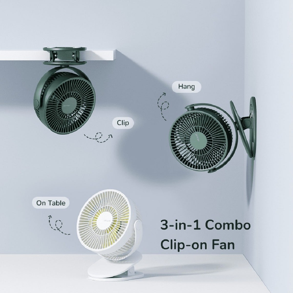 Premium prenosni mini ventilator JisuLife "ClipOn" s sponko, stojalom in 360-sto ...